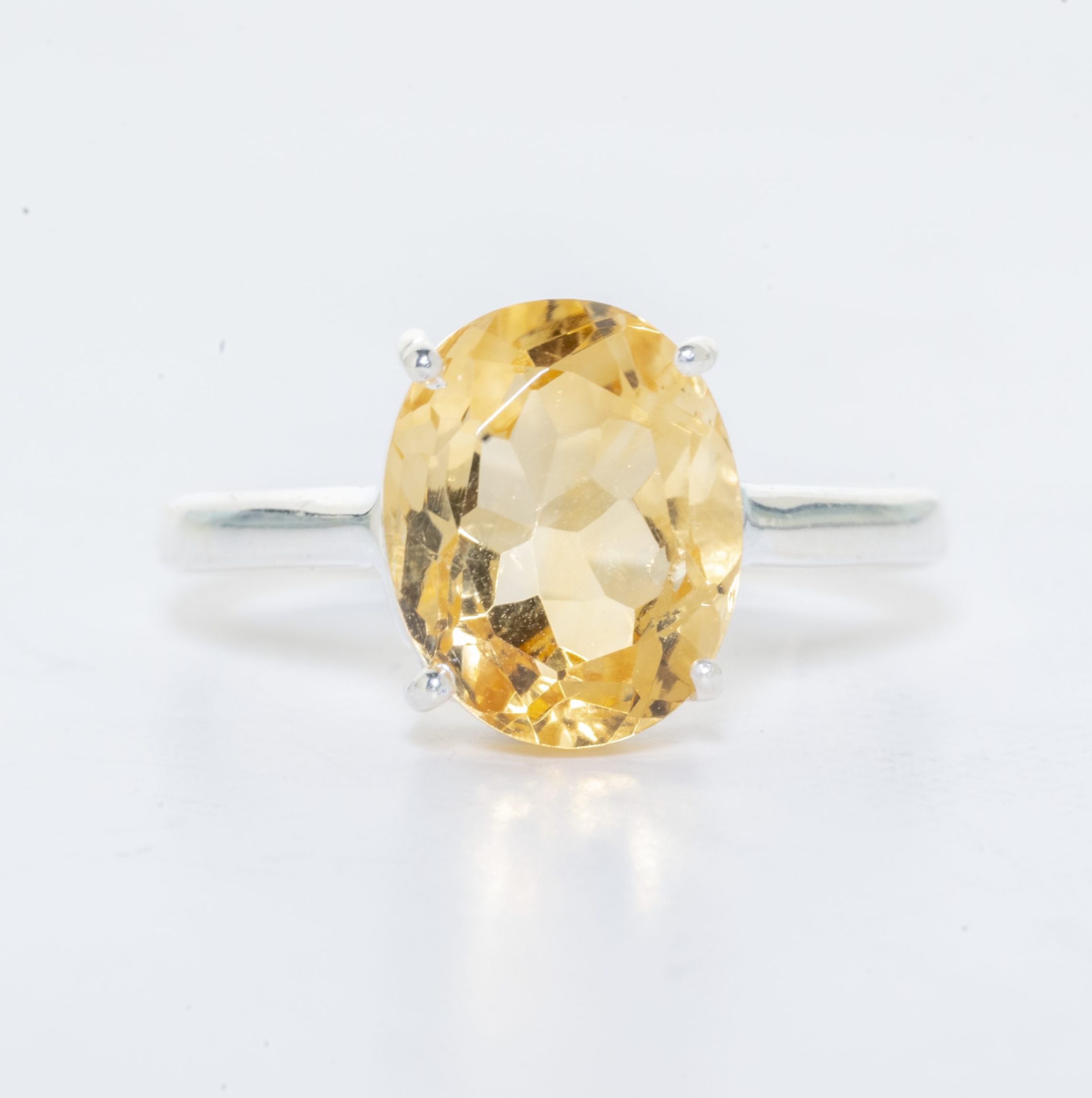 Anillo alianza hecho a mano con cuarzo Citrino facetado talla oval y plata 925.