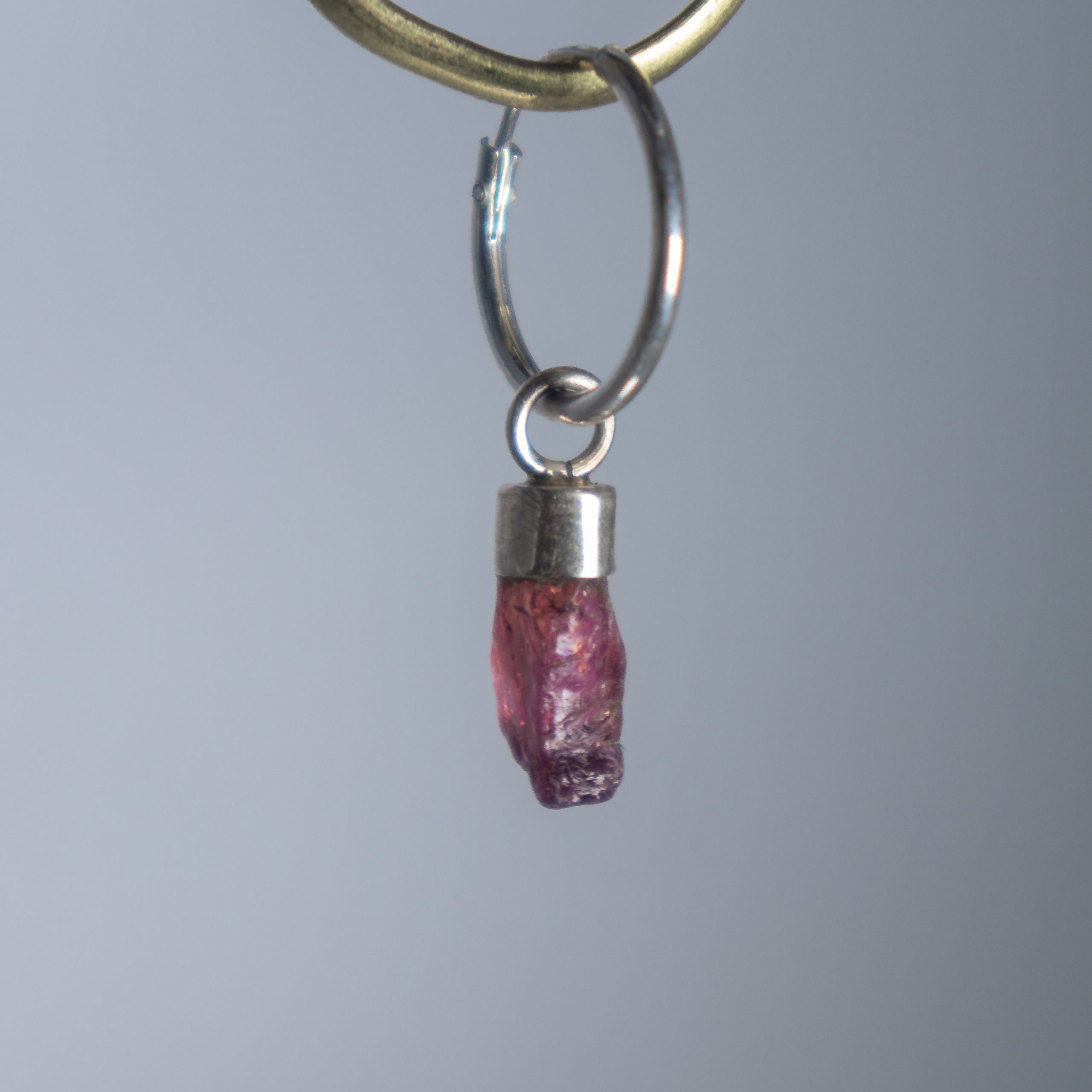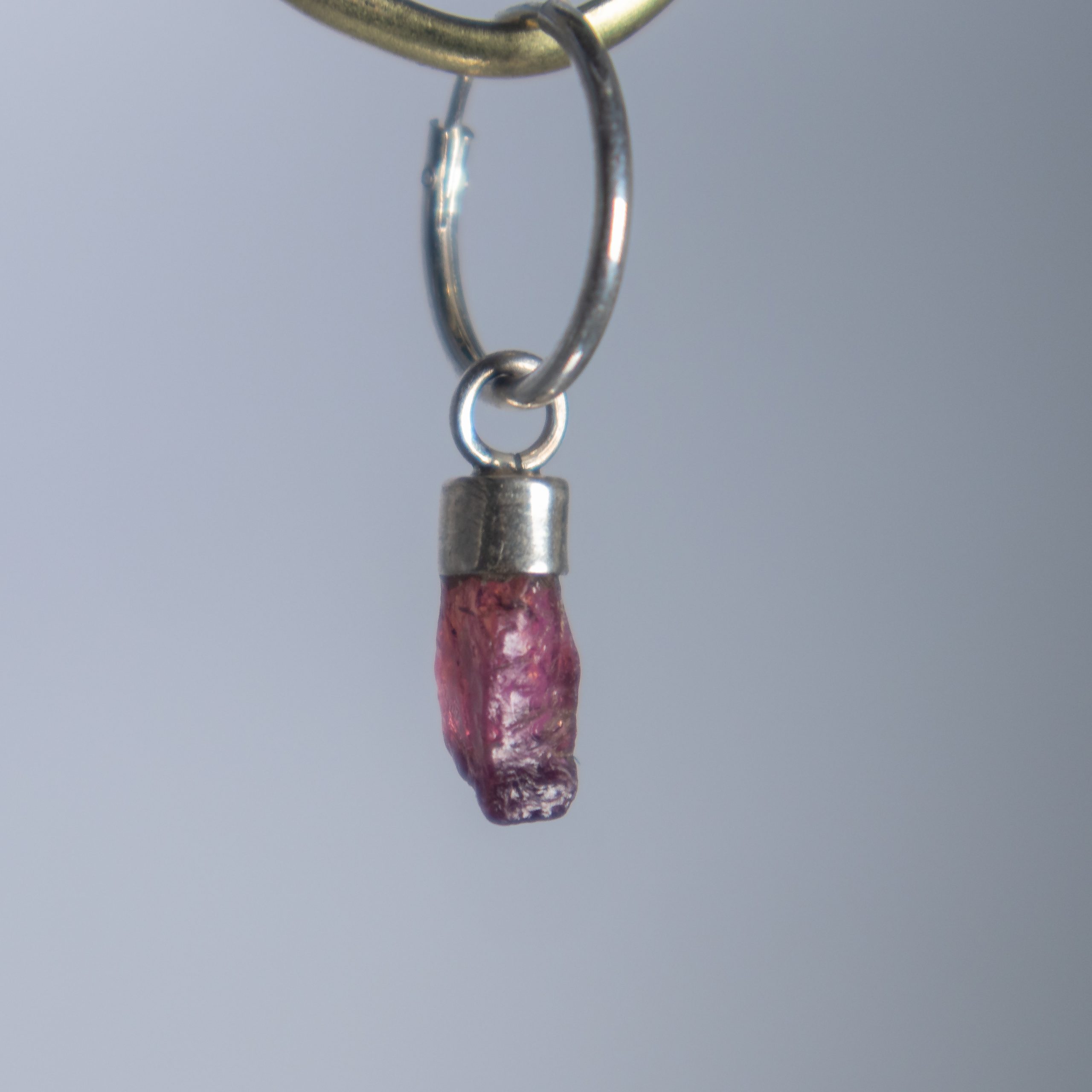 La parte que cuelga del aro, es decir la Turmalina engarzada en plata, la puedes sacar del aro y cambiarla cuando te hayas aburrido de ese tamaño de aro, o simplemente quieras colgártela en una cadena y transformarla en collar.