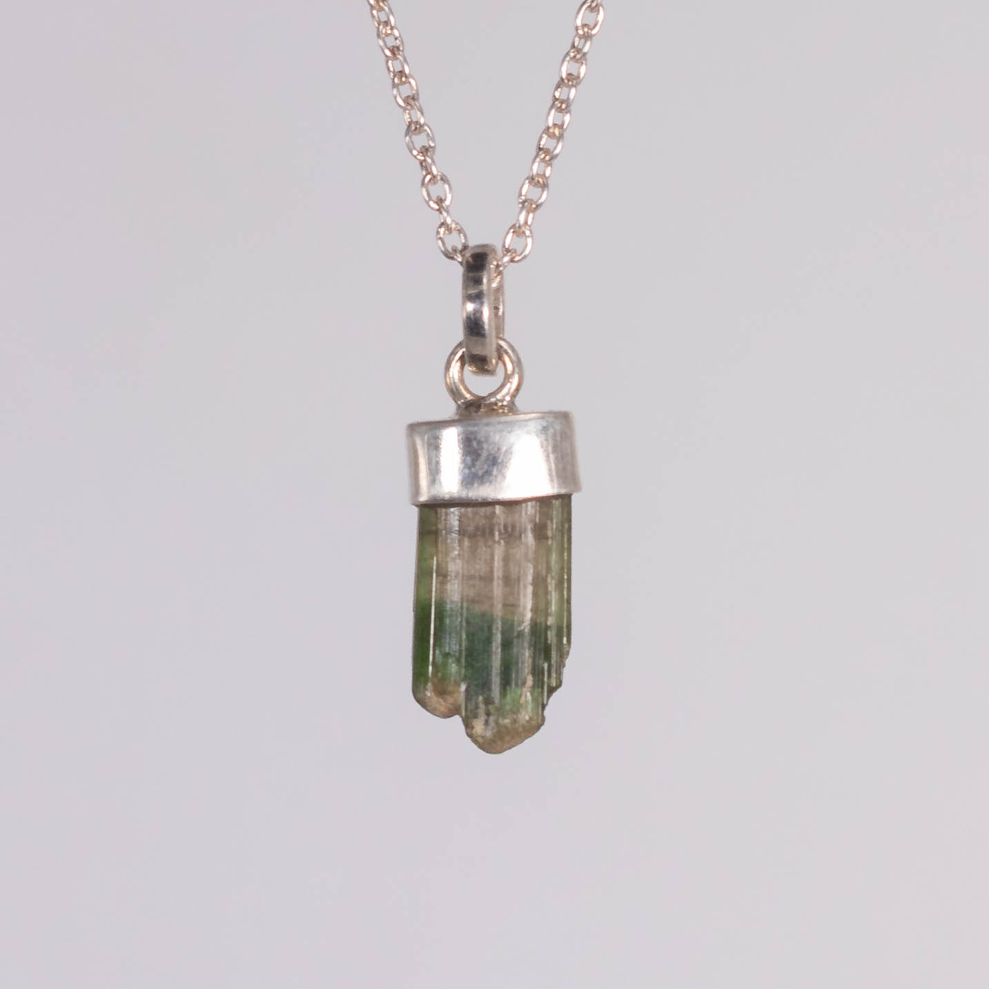 Joya multiposición con piedra natural en bruto de TURMALINA VERDE BICOLOR en bruto.
